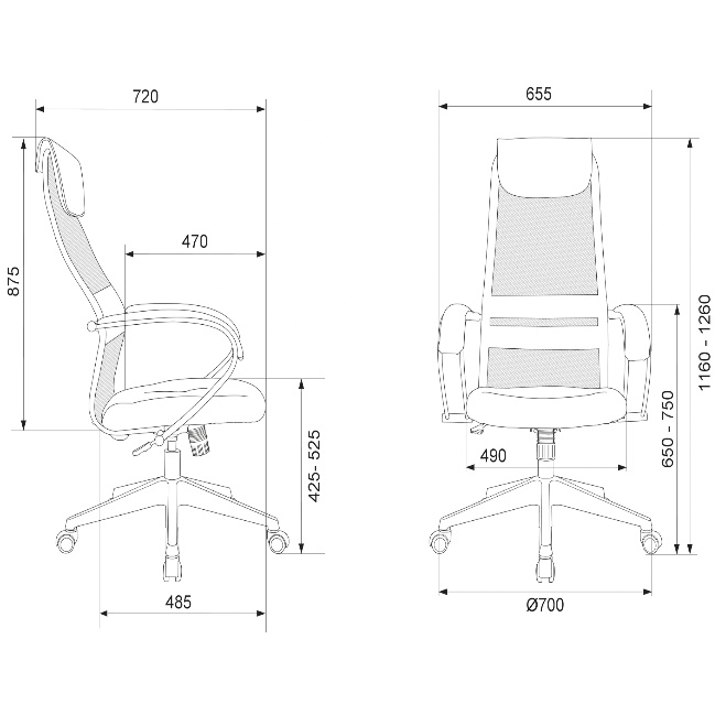Высота кресла (макс), мм 1260