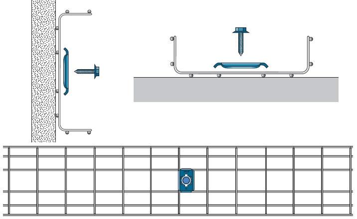 Для настенного и подвесного монтажа лотков. При монтаже на стену используются болты M8/M10; для подвесного монтажа – болт и гайка X61/X62.