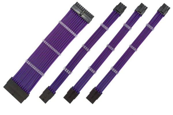 —Комплект удлинителей питания материнской платы, процессора, видеокарты, 0.3м, фиолетовый