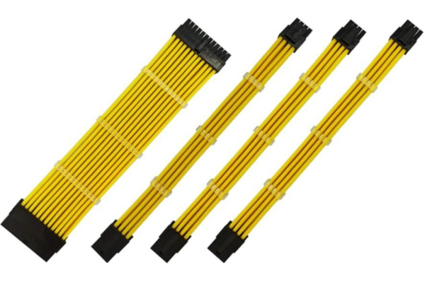 —Комплект удлинителей питания материнской платы, процессора, видеокарты, 0.3м, желтый