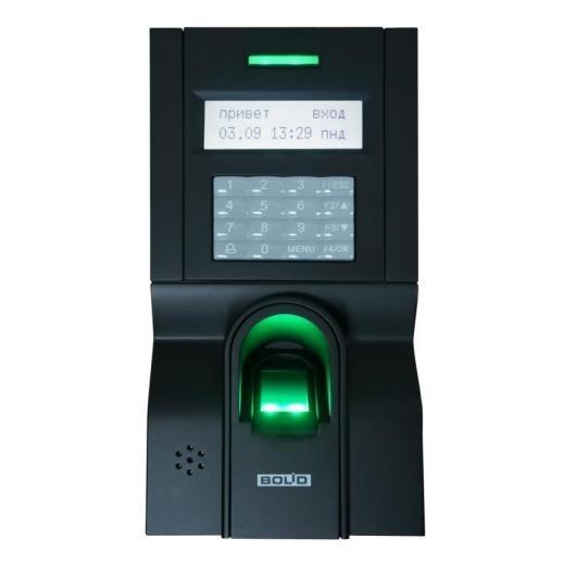 Биометрический контроллер, 1500 отпечатков, 100000 событий, встроенный считыватель EM-Marin, двухцветный светодиод, голосовые сообщения, интерфейсы Wiegand (выход), Ethernet, релейный выход, тревожный выход, подключение кнопки выхода и датчика положения двери, 12В, 1А, работа в сетевом (ПО "Орион Про") и автономном режиме (ПО BAProg), 73х148х35 мм, IP54, -10...+60°C.