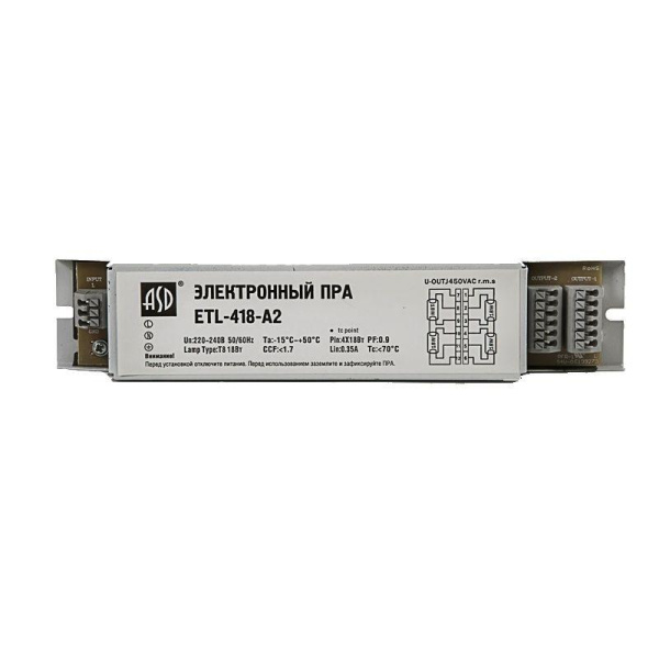 ПРА электронный (ЭПРА балласт) ETL-418D с фильтром защиты 4х18Вт